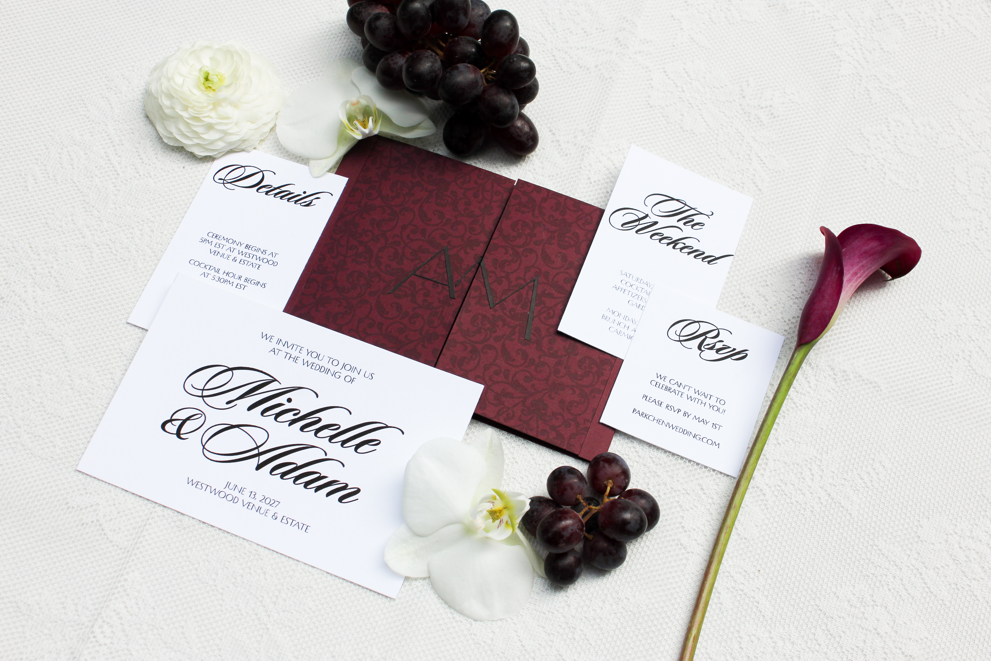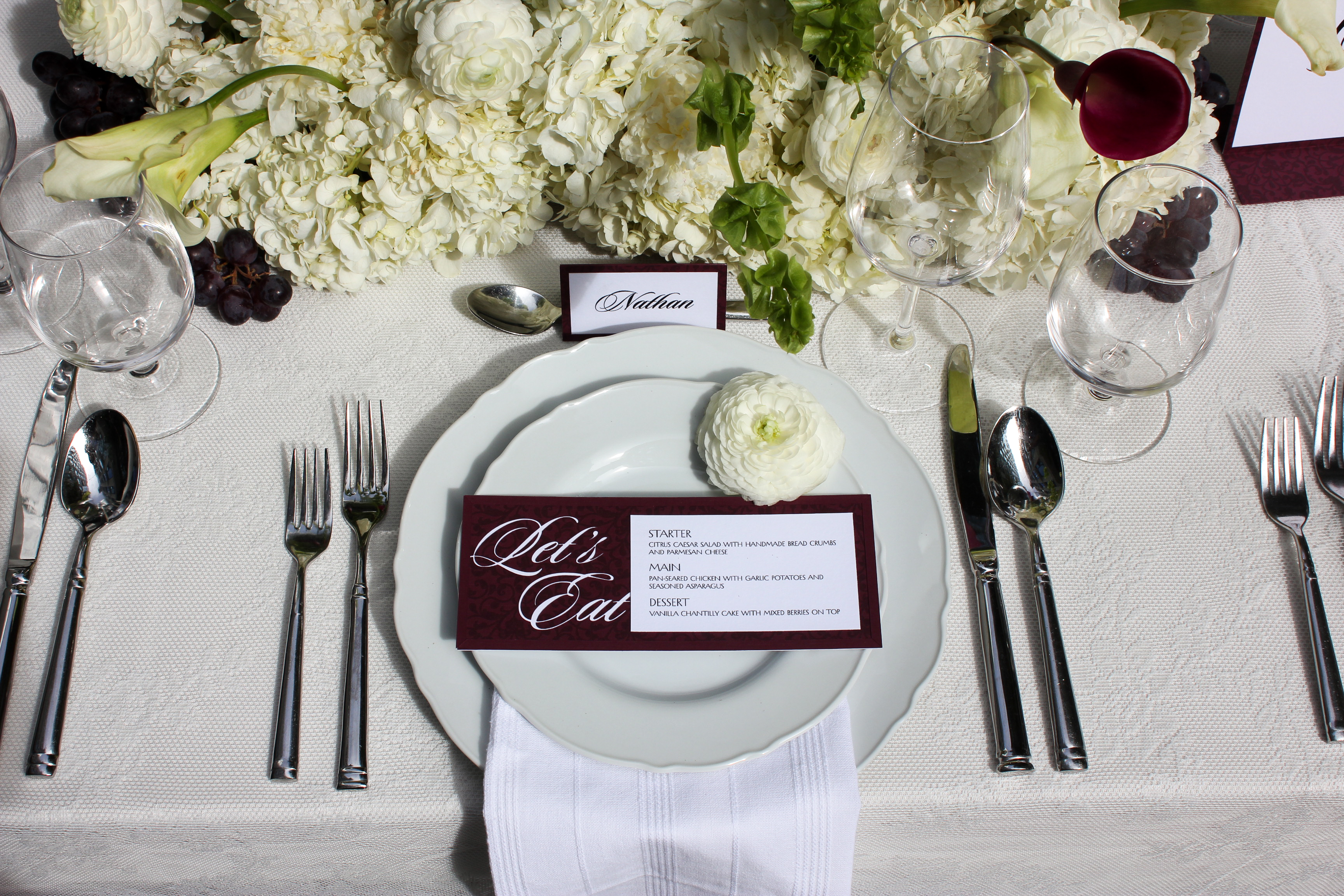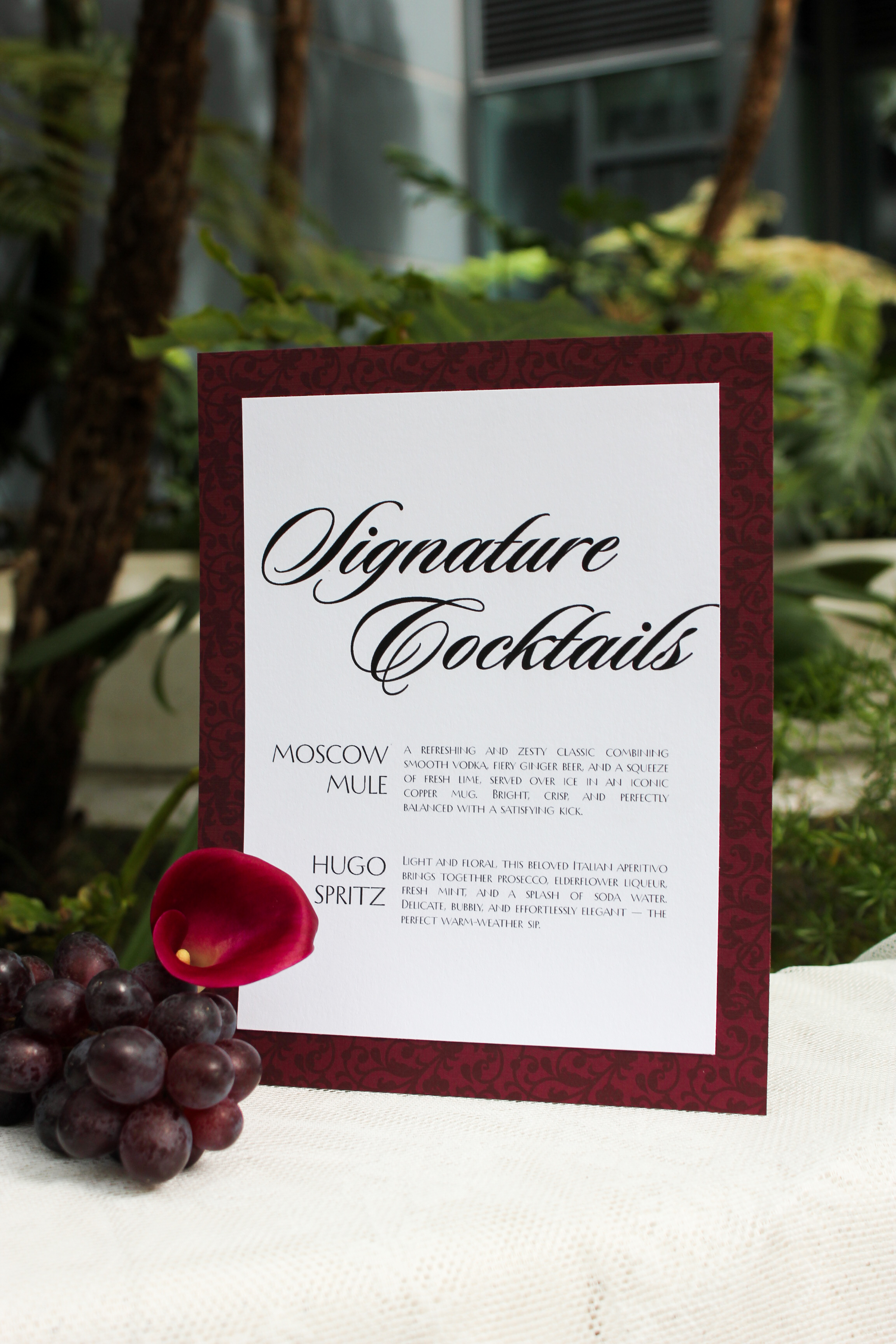 Custom Invitations, Menus, Name Cards, Table Numbers, & Bar Signage